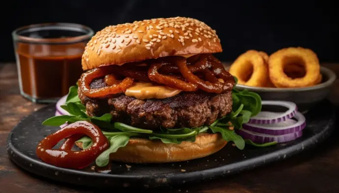 con 2 onions rings y acompañado de guacamole